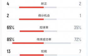 3月21日讯 本轮中超,河南1-1武汉三镇。双方全场重点数据对比如下↓(主队河南在前)射门19-7射...
